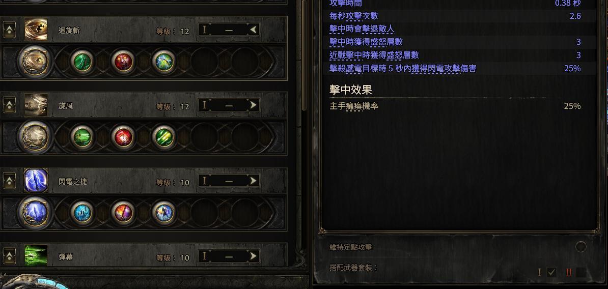 简单分享一个算蛮无脑通关剧情的流派,1等就成型,看到全网都在推锐眼,但以我以前的经验来说,初期弓、弩、掷弹体验其实不好,而旋风流派则因为0.3更新内容-【辅助可以重复使用】得到了大优化。初期苦恼的疾速攻击该给谁?现在直接每个技能都可以补上。无缝自动切换武器使用技能也大幅度提升旋风的额外伤害,旋风接触到元素地面会附加该元素50%的额外伤害
